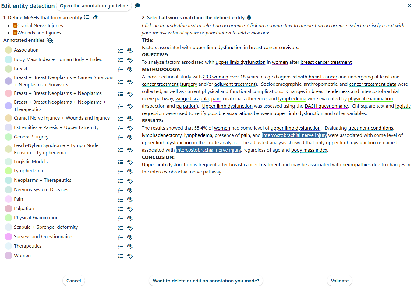 Abstract Highlighting: Thanks to manual annotations, we can significantly accelerate your reading of an abstract by clearly highlighting the entities relevant to your specific study.